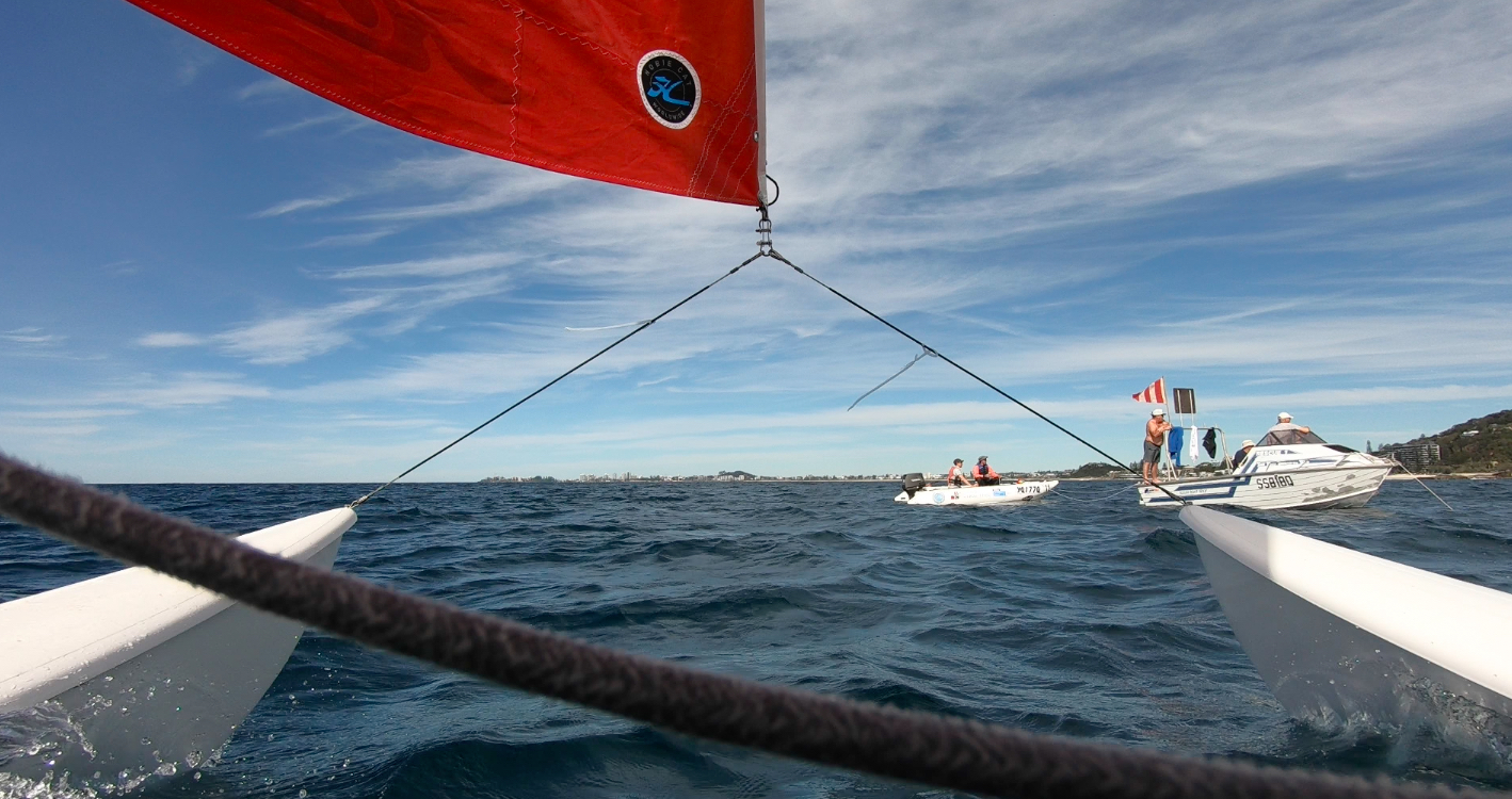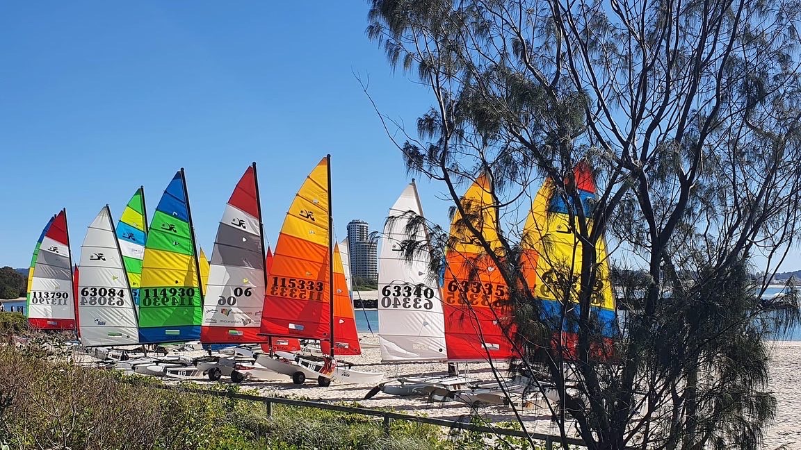 As the sun rose on another cool winter’s morning in South-East Queensland, the QLD Hobie Family were feeling overly chipper (for no reason in particular) at the prospect of their New South Welsh brethren arriving later that morning. So, as Team Baddie from Coochiemudlo began packing the GCCC start boat, it was action stations as Team Vincentia hit the Goldie on MB’s birthday.