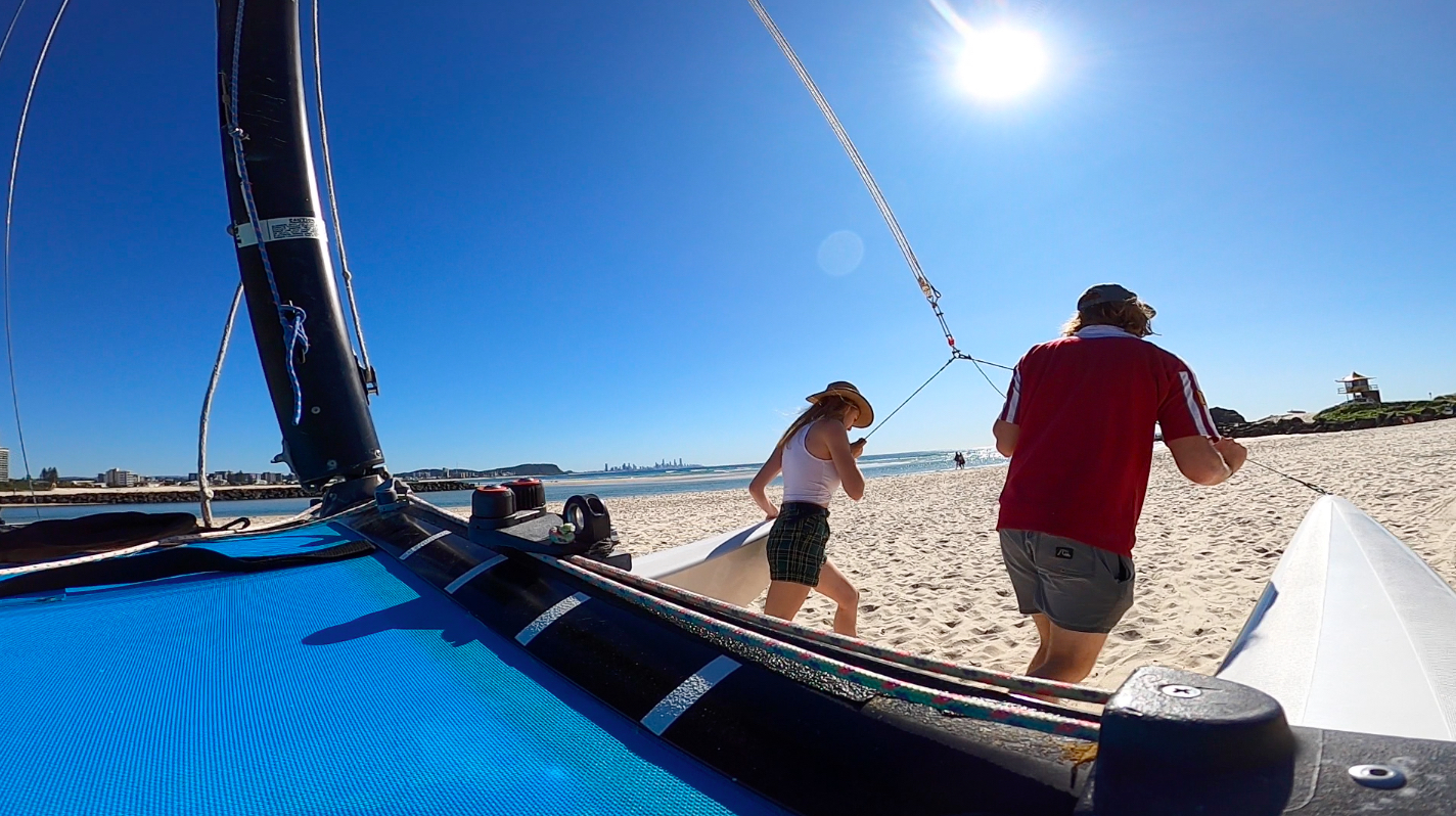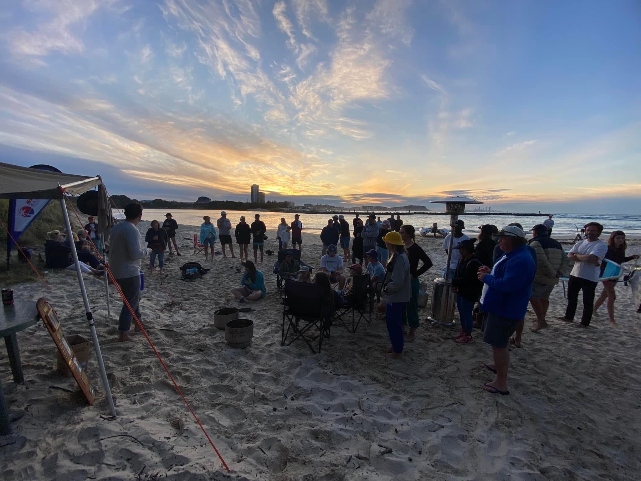 Our sailors awoke reluctantly to an absolute glass off along the entirety of the God Coast. It was a slower start than usual, as could be expected after what was a glorious night at Squirter’s MANCAVE. So, while the fleet of sleep-deprived seafarers began dawdling down towards their vessels, it was bacon and egg rolls on the beach as Eliza began cooking up a storm.