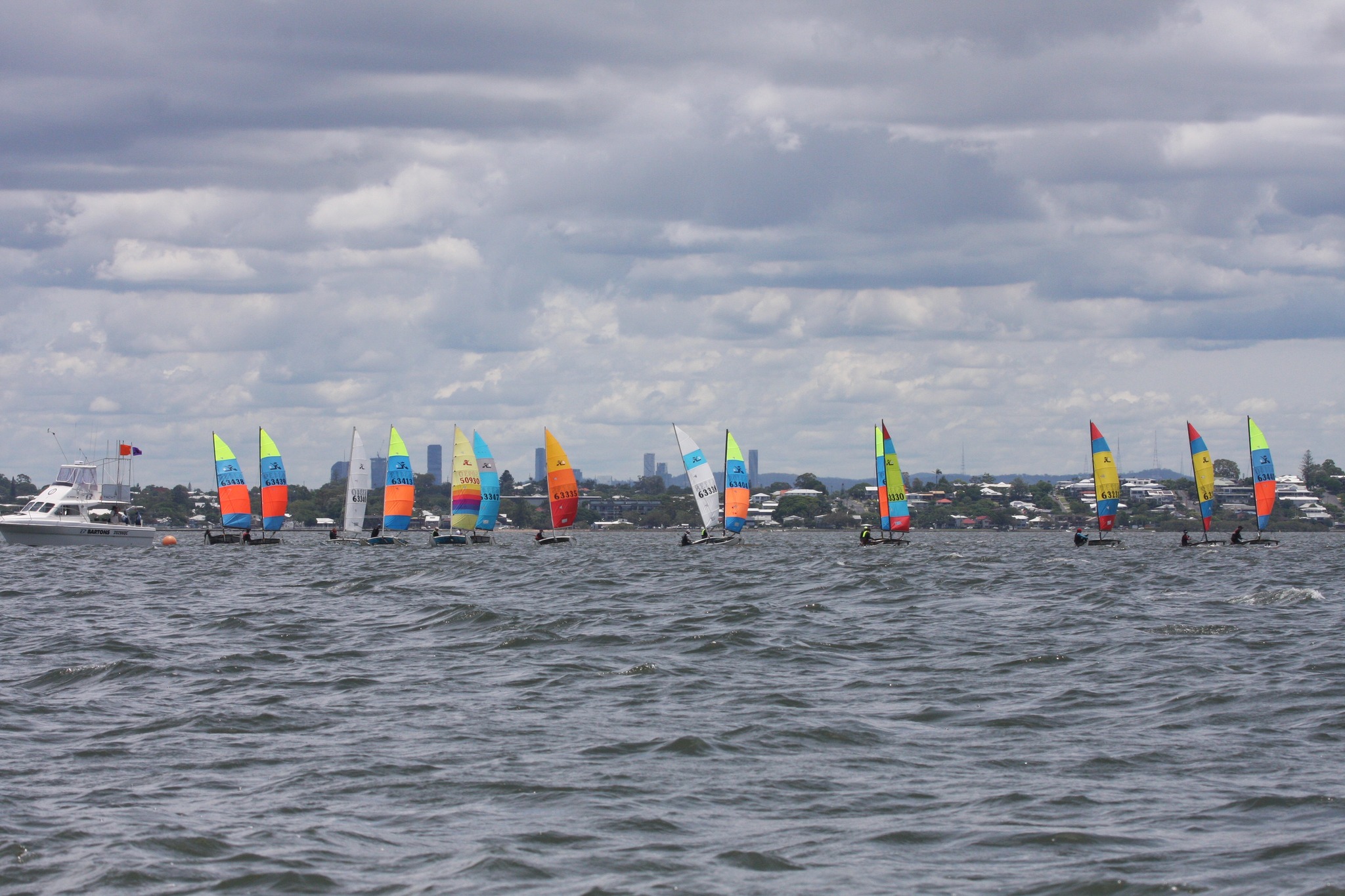 Before we get into details of the race course, a massive thank you must firstly go out to our sponsors: Yacht Share, whose support of Hobie Sailing in Queensland is second to none; Cat Covers, whose unbelievable prizes and giveaways will keep the Hobie Family’s heads and boats protected from the sun for years to come; Gordon and the whole team at Sunstate Watersports, for their continual presence and support of the Hobie class throughout the Sunshine State; and Gill, for their continued support of the Queensland Association and the greatest hooded towels known to sailor-kind.