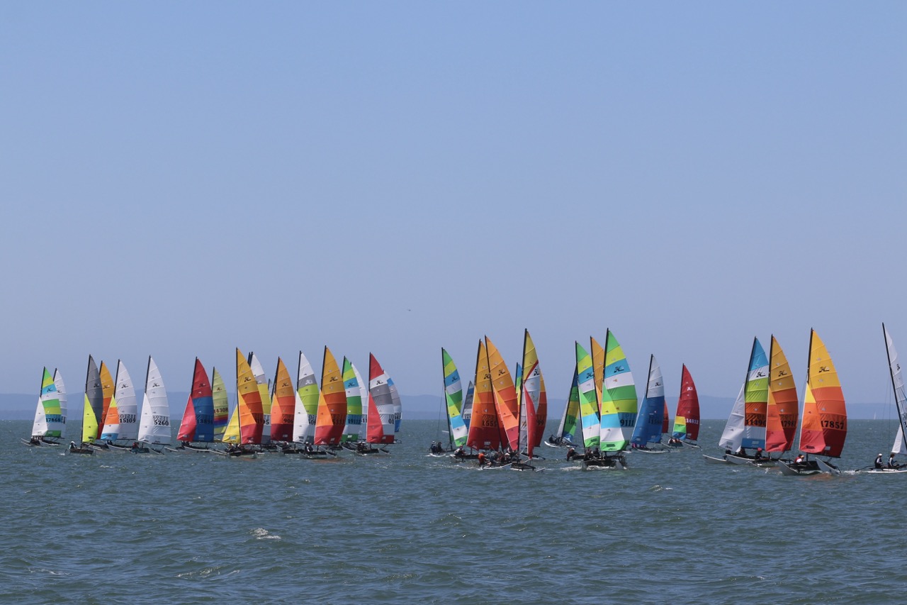 With Paddy, MB & Rod all hot to trot after their outing the Italy, Paddy’s statement in Italy that Australia’s Hobie 14 sailors are “the best fleet in the damn world” could not be more accurate. Andrew Boyd (TBC), back on location, cracked the top-10 on 98 points, one point in front of Zak Rowdon (VIC). Three points in front of Boydy, Georgia Warren-Myers (VIC) who took out the Women’s Championships for a third year running.