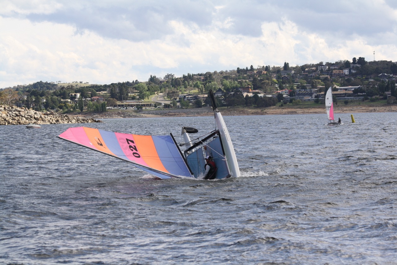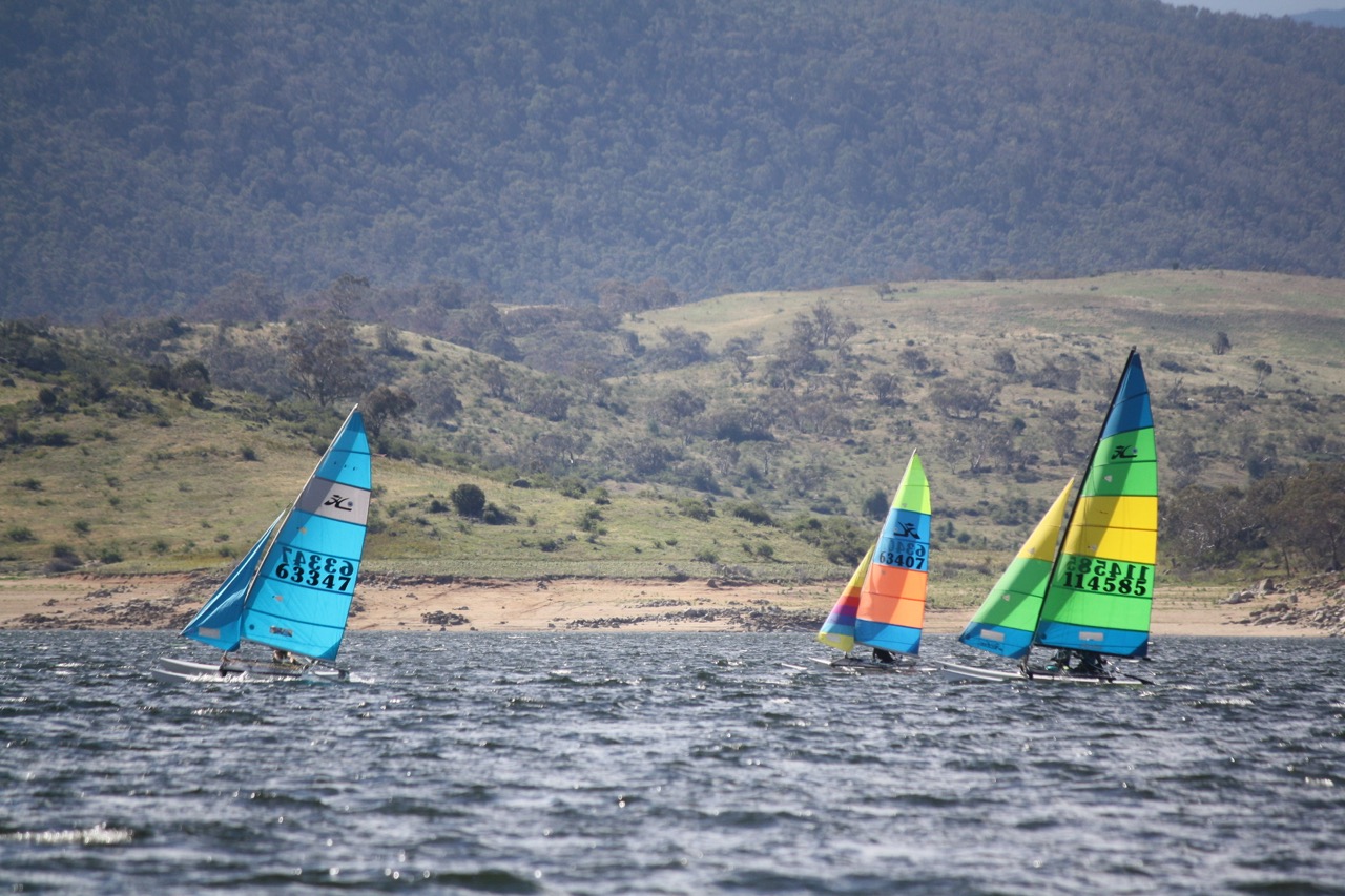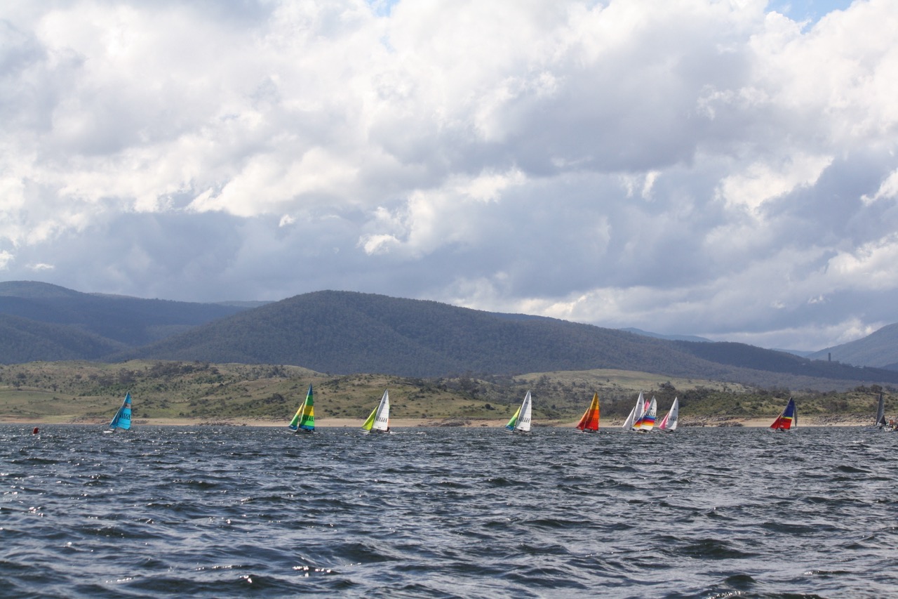 The second day of the Snowy Mountains Regatta began with an early morning breeze, as campers woke to the remnants of rain that had soaked Lake Jindabyne the previous evening. As the breeze subsided, returned, and then finally settled into a leisurely pace, the fleet hit the water, ready for three action-packed races.